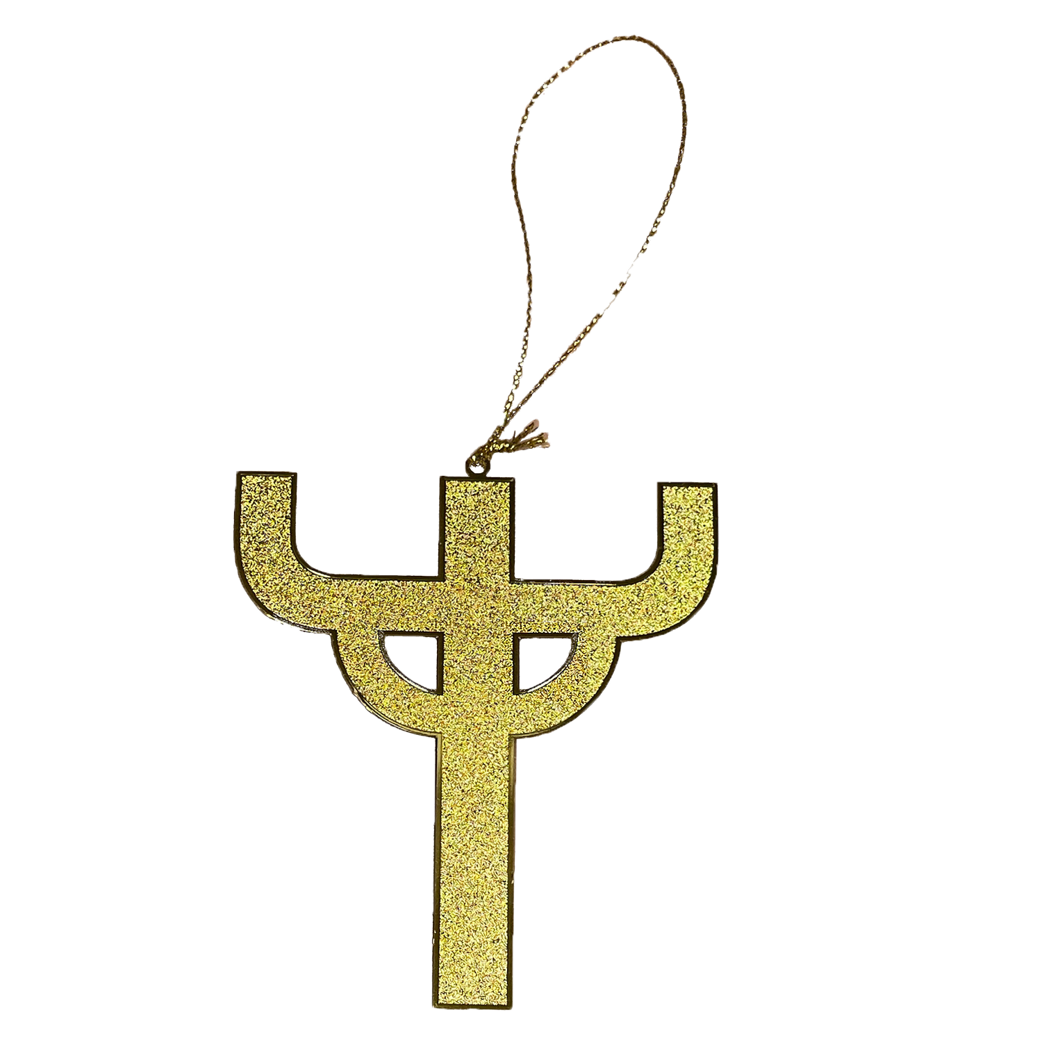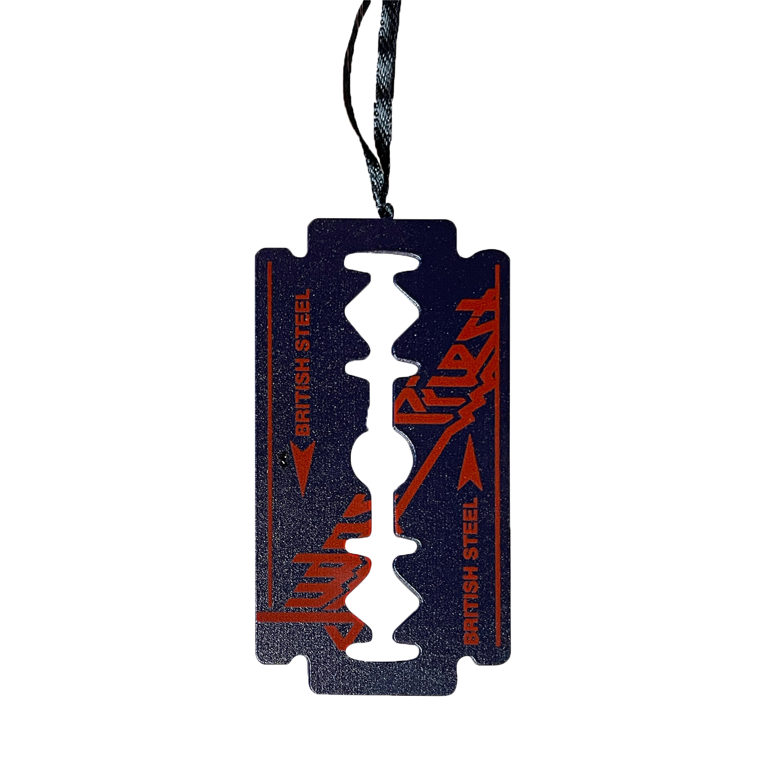 The Holiday Ornament Set by Judas Priest is a two piece holiday ornament set that features a golden pitchfork and a stylized British Steel razor.