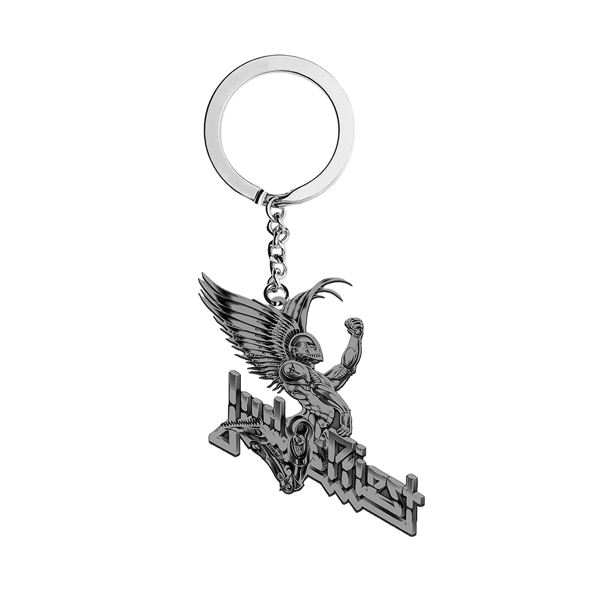 The perfect accessory for Judas Priest fans! This solid pewter keychain features the winged metallic Painkiller and Judas Priest logo.